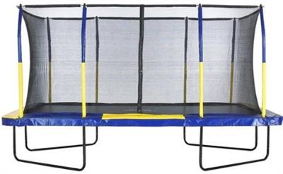 Attaches to the trampoline frame and has pockets for holding shoes and loose objects