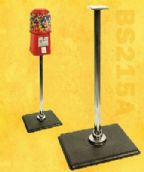 Beaver gumball machine stand. The BS215A stand is constructed with a cast iron powder coated base and a triple chrome plated single pipe steel tube. It is designed specifically to mount to the Beaver Gumball Machine.