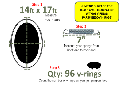 Jumping Mat for 14' x 17' JumpKing Oval Trampoline with 96 V-Rings using 7" Springs