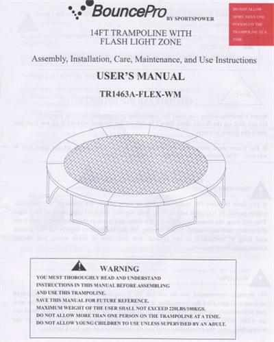 Manual for the 14' SPORTSPOWER Model TR1463A-FLEX-WM Trampoline