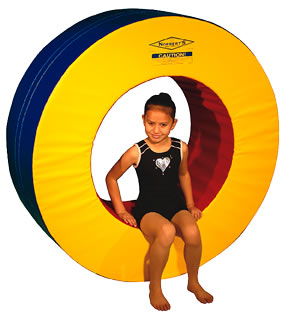 The round donut is the original shape that started it all. Used for skill development, kids can roll it, jump through it, lay it flat, etc. This one piece donut is covered in durable 18 oz. vinyl and filled with two 1.25" thick layers of crosslink polyethylene with a firm 70 ILD polyurethane core sandwiched between.