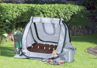 The SeedHouse Jr. is designed for the home gardner. Start and maintain seedlings inside your home, on your deck or in your yard. This seedhouse provides a convenient and effective way to protect your shrubs and perennials against harsh winters. The SeedHouse Jr. is compact and lightweight and requires no assembly tools. Set up, take down and store in seconds. There are 2 large zippered windows providing excellent access and the 2 screened vents allow optimum ventilation and pest protection. The SeedHouse Jr. is constructed with the incredibly durable Gro-Tec™ material. Gro-Tec™ is UV resistant, waterproof and features rip stop protection.