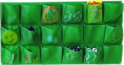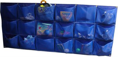 No more loose shoes, purses, jump ropes, etc. becoming a falling hazard in the classroom or gym. Store your items in the 18 separate 36"x72" storage container. The large mesh pockets are backed by vinyl and easily mount with a reinforced top flat fitted with grommets.