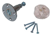Created for wood and wood over concrete floor, the floorplates measure at top diameter of 3.25" and are made of welded steel with chrome-played spring loaded pop-up cap, replaceable 1/2" thread anchor bolts, a large portion of quick drying mortar and detailed instructions.
